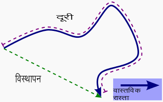 विस्थापन और दूरी में क्या सम्बन्ध / अंतर है?